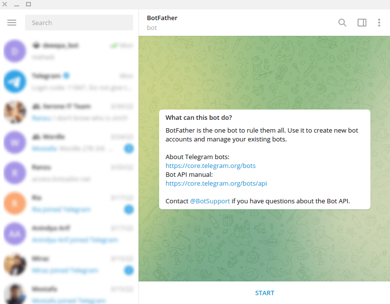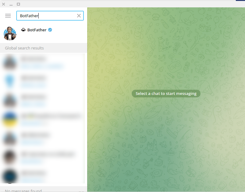 To build a Telegram bot with BotSailor, first, open your Telegram App. Then in the search bar of the app, search with the ‘BotFather’ keyword. Then select the verified BotFather account.